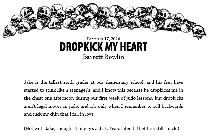Ehsan Ehsani and the good folks over at Mystery Tribune were awesome enough to publish a thriller/suspense story of mine called “Lollipop Sweet.” If you liked the Truly Tasteless Jokes books from years ago and aren’t squeamish, the story might be right up your alley. Cheers, y’all.